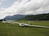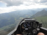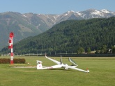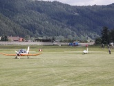 Obwohl der Tag von den Meteorologen etwas schlechter gesehen wird als gestern, entwickelt er sich dann doch wesentlich besser. Die Thermik ist zwar nicht immer leicht zu durchschauen, aber immerhin schaffe ich es bis Niederöblarn und retour, so dass am Abend knapp 250 km rauskommen. Hugo und Hermann fliegen sogar bis Zell/See weiter und kommen mit etwas Mühe auch wieder heim, was in Summe 450 und 360 km ergibt. Herbert fliegt auch bis Niederöblarn, kommt aber am Nachhauseweg etwas zu tief und landet sicherheitshalber in Trieben, von wo er sich zurückschleppen lässt.