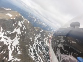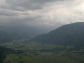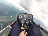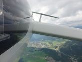 Viel Thermik ist ja nicht vorhergesagt, aber gegen Mittag startet Günter mit Martin Kalch im Twin-Astir zu einem Einweisungsflug. Der Schlepp ist ziemlich turbulent, aber so richtig rustikal wird erst mein nachfolgender Schlepp, wo es trotz 180 PS in der Schleppmaschine zeitweise mehr runter als raufgeht. Erich hat in der KUB mit vollen Ruderausschlägen schwer zu kämpfen und mir geht’s nicht viel besser, aber zumindest sehe ich an der Schleppmaschine vor mir, was mich 1-2 Sekunden später im leichten Segelflugzeug noch härter trifft. Über Funk warne ich natürlich Rudi, Sepp und Franz Neubauer, die noch am Start warten, aber da haben sie eh schon vom Zusehen beschlossen, dass sie nicht starten werden – sicher die beste Entscheidung. Weiter oben werden Wind und Turbulenzen erstaunlicherweise weniger, aber da nach rund 2 Stunden Regenschauer am Hochschwab und am Präbichl entstehen, beschließen wir vorzeitig zu landen. Der Landeanflug ist dann wieder von der kernigen Sorte und erfordert ordentlich Speed und flotte Ruderausschläge.