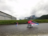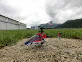Trotz niedriger Basis findet sogar Flugbetrieb statt – leider nur mit dem Modellhubschrauber und bei grenzwertigen Windverhältnissen für das 45g-Ding. Die Abstürze sind dementsprechend spektakulär, aber bei der geringen Masse geht selten etwas kaputt.