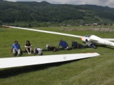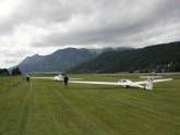 Da für morgen wenig Besserung zu erwarten ist, nutzen wir eine kurze Regenpause zum Abrüsten unserer Segelflugzeuge.