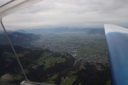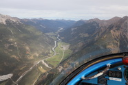 Ein toller Anflug, wir kommen vom Norden in das Tal, fliegen, fast wie bei uns, Hochspannungsleitungen entlang, dann südlich der Festung Rosskopf vorbei, Umfliegen die Ortschaften im Lechtal und da isses, das Finale 04, okay, die Halle ist doch recht nahe, wir sitzen ein paar Meter hinter der Schwelle. Rückrollen Takeoff 22, im Westen im Lechtal umgedreht, erneuter Anflug 04, jetzt an der Halle vorbei, kleine Kurskorrektur im shortest Final, zweite Landung 04 erledigt.