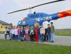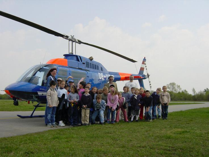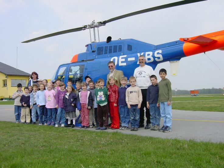 | Am 23.4.2002 besuchte uns die 1a-Klasse (Volksschule) der De La Salle Schule Strebersdorf. In Begleitung ihres Klassenlehrers, Herrn Schulrat Alfred Klinger und der Erzieherin, Frau Sabine Prochaska, besichtigten 25 Buben und Mädchen unseren Flugplatz. Zu Beginn der Besichtigung wurde unsere OE-DYU, eine Cessna 172, von den Schülern "erobert". Mit Begeisterung wurden Quer- und Höhenruder betätigt, Landeklappen ausgefahren und die Trimmung betätigt. Und natürlich wurde viel gefragt. Nach einer einfachen, eben dem Alter der Kinder entsprechenden Einführung in die "Geheimnisse" der Fliegerei wurde mit Begeisterung der Start einer Cessna 150 beobachtet. Da sich hiermit ein Flugschüler in die Platzrunde zum Üben begab, konnte man Starts und Landungen in kurzen Abständen sehen. Anschließend begab man sich zum Hubschrauber Bell 206 Jet – Ranger der Firma Aerial und besichtigte diesen eingehend. Hier entstanden auch die Fotos. Hungrig geworden freuten sich die kleinen Besucher auf die Verköstigung in der Kantine, wo sie von unseren Pohls liebevoll betreut wurden. Nach der Jause ging es kurz in den Lehrsaal mit Besichtigung des Flugsimulators. Wie es sich für den Besuch eines Aerodromes gehört, verging die Zeit mit unseren Besuchern "wie im Flug" und es wurde Zeit für den Abschied - mit dem Versprechen des Klassenlehrers, uns, wenn die Kinder in der vierten Klasse sein werden, wieder zu besuchen. Betreut wurden unsere Gäste von Helmut Harringer unter Mithilfe seines Sohnes Daniel, der selbst ein Schüler der 1a ist. |