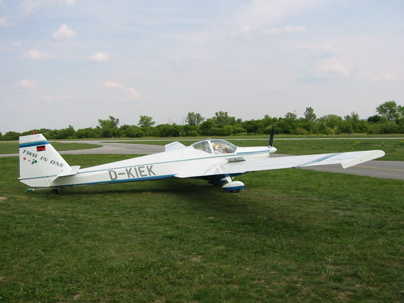 | Die D-KIEK ist, wie vom Hersteller Scheibe Flugzeugbauer versprochen, gestern um 15:00 Uhr in LOAU zum Probefliegen gelandet. Das Flugzeug, ein schlepptauglicher Falke, mit einem 100 PS Rotax Motor wurde uns vom Hersteller für einen Nachmittag zur Vorführung seiner Leistung zur Verfügung gestellt. Nach einer ausführlichen Einweisung am Boden konnte die Flug Erprobung beginnen. Mit seinen 100 PS wurde beim ersten Start Rudi mit dem Standard Astir in die Luft befördert. Ungewöhnlich für den Schleppiloten und den Segelnflugzeug Piloten war, daß die Schleppmaschine bereits vor dem Segler abgehoben hatte. |