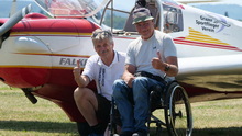 Am nächsten Morgen treff ich einen alten Bekannten, den Günther aus Fischbach, einen der wenigen Rollstuhlfahrer-Piloten Österreichs, ich kenn ihn schon ein paar Jahre aus meinen Urlauben mit Verena, Andrea und Peter im Dorfhotel Fasching, er ist mit seinen Grazer Freunden auf Fluglager in Wolfsberg, na wenn das kein Grund für ein Selfie ist ....