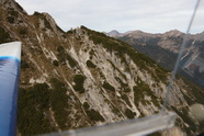 Ab nach Füssen, Falkenfüttern mit Mogas, blaue Falkenschuhe anziehen und ab gehts, Kurs West, prächtig. Ja, in Hohenems seh ich das herannahende Wetter schon deutlich stehen und das passt genau, ich dreh vorm Wetter um und fliege ihm davon. Wahnsinnsgegend hier, ein wirklich toller Teil unseres Landes, ich mein, Triebwerksausfall wünsch ich mir da keinen, die Landemöglichkeiten beschränken sich unter das berühmte Minimum, es gibt da zeitweise garnix was auch nur im entferntesten land-bar aussieht. Deutlicher Wind aus Südwest, also fliege ich an den Südhängen entlang, ich bin fast 10.000 ft und nicht wirklich über den Bergrücken, ein Saufen in den engen Tälern kann ich da garnet brauchen.