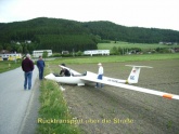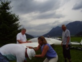 Die Ka-8 bleibt auch noch für einige Tage in der Steiermark, weil der Transport im offenen Anhänger bei den vorhergesagten Regenschauern zu riskant ist.