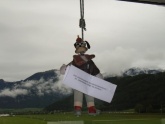 Die Wetterberuhigung ab 18:00 ermöglicht doch noch ungefähr 3 Flugbewegungen mit dem einheimischen Falken und Karl Müller repariert mit einem todesmutigen Stunt den vom Wind arg mitgenommenen Windsack.