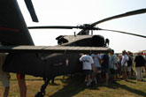 Als um etwa 13:30 der Riesenhelikopter nach einem Demoüberflug landet, bildet sich schnell eine richtige Menschentraube um das Gerät.