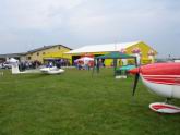 so wollen wir's dann auch halten, haben aber auch Vorsorge getroffen falls ein paar Regentropfen die Stimmung stören. Unser Hangar ist ausgeräumt, wir sind für den einen oder andern Schauer gewappnet. Auf etwa 500m² Hallenfläche sind die Heurigengarnituren aufgeschlagen um unsere Besucher "nicht im Regen stehen" zu lassen.