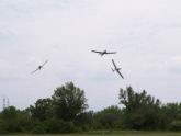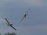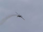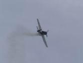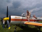 Gleichzeitig ist die Landung der Start einer "Flugshowstunde". Katanaformation, Modellflieger, Christians Segelkunstflug mit Rauch und Musik und last but not least Helmut mit der Yak. Etwa eine Stunde lang war wirklich die Hölle los, eine Demo nach der anderen, es ging Schlag auf Schlag.