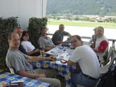 | 11 Flugzeuge bei einem Vereinsausflug gab's noch nie! OE-AHC: Wolfgang Macalka, Christian Tawfik OE-ALJ: Gerhard Lahmer, Monika Pelech OE-CBR: Rainer Gottfried mit Frau OE-COG: Marion Zsak, Erich Cozowicz OE-DTA: Andrea Fröhlich, Walter König OE-DYU: Florian Demmer, Wolfgang Hollinetz OE-KEX: Anton Dabsch und Frau, Thomas OE-DKT: Manfred Pavel, Helmut Harringer OE-DND: Grete & Kpt. Peter Janda OE-DHW: Viktoria Reichenberg, Richard Rettenbacher OE-DBW: Ilse Binder, Wolfgang Faschang Special Guest: OE-FGI Kpt. Schnurlihaxi Werner Hansel Fr. 2.7.2004 Fast als Gemeinheit könnte man das Wetter - oder auch nur die Vorhersagen - bezeichnen. Die vielfach abgerufenen Informationen aus dem Internet ließen kein Schönreden der Wetterlage zu. Und wenn einmal einer Bedenken äußert, kann er andere schnell davon überzeugen. Gewissermaßen aus Trotz und in unbändiger Aus-Flug-Stimmung gibt's dann - bzw. ließ sich einfach nicht vermeiden - die kleine Variante: Krems. Aufwärmtraining - naja ist uns ja wirklich schon vertraut. Einmal nicht im eigenen Vereinslokal beisammen zu sitzen hat eben schon etwas von einem wirklichen Ausflug. Aber: der eigentliche Abflug wurde auf den nächsten Tag verschoben. Darüber hinaus ließen sich noch anstehende Dinge erledigen wie: Florian vervollständigte seine Einweisung auf der YU und Ilse musste nur noch schnell das vergessene Flugbuch aus Dobersberg abholen.. Sa. 3.7.2004 Der Wettergott hat ein einsehen und wie´s aussieht wird er uns für den verspäteten Abflug entschädigen. Schon der morgentliche Stau bei der Tankstelle ließ ahnen, dass es ein besonderer Tag werden wird. Fast wie zur Rush-Hour in LOWW ging's im Zweiminuten Takt zum Rollhalt Alpha: Start nach eigenem Ermessen Piste 25... "BravoAlfaBravoAlfa" Über verschiedenste Routen, über (COG in FL 110!) oder unter den Wolken, im Alpenvorland bis zum Salzkammergut oder gleich im Ennstal - alle Wege führen nach Tirol ! Kpt. Janda, der alte Raser mit der DND ist natürlich nicht einzuholen und schlägt als Erster in LOIJ auf. So nach und nach trudeln die Stockerauer Flieger ein, manche nach einem kleinen Abstecher, wie die DYU die sich noch Mauterndorf angeschaut hat, oder die CBR, die mit Verspätung in Stockerau gestartet ist. Sogar die 150er hat´s geschafft, obwohl am Freitag noch unklar und in der Werft, wurde sie mit noch feuchtem PPL hervorragend pilotiert - "..nur kan Stress.." oder "I loss mi net verhatzn" Anm. der Red So, erst mal verschnaufen, ein Mittagessen, einen Kaffee, das Panorama genießen und einfach bei den Tiroler Kollegen wohlfühlen. Aber wir sind noch lange nicht zufrieden, wir warten grade mal die Mittagspause ab, in der wir das Fax mit Flugplänen füttern und ausdiskutieren wo denn jetzt die neuen Meldepunkte sind, und schon gehts los nach Innsbruck. Manche von uns sind jetzt soweit daß sie´s ein bißchen geruhsamer angehen und mit Bus oder Taxi in die Stadt fahren, Goldenes Dachl anschaun, Kaffee trinken, alte Bekannte besuchen u.s.w., die ganz unverbesserlichen brechen sofort wieder auf und machen auch noch Bozen in Südtirol unsicher. In Innsbruck stößt auch Kpt. Schnurlihaxi zu uns, in St.Johann war ihm die Piste für die FGI doch ein bißchen zu kurz.... Der einzige Wehrmutstropfen ist das Betriebsende (19.00 Uhr loc.) in St. Johann, so haben wir dann fast noch Stress, in Innsbruck rechtzeitig wieder in der Luft zu sein. Aber jetzt wissen wir auch mit den LIMAs und ECHOs Bescheid, bekamen auch noch unsere wichtigen Stempel vom überaus freundlichen "Mr. Flugplan" und schafften es ohne weitere Rügen pünklich zurück. Kaum zurück stellen wir uns den logistischen Problemen. Wie oft muß das Taxi fahren um uns alle in unsere Unterkunft zu karren? Wir wohnen im Lacknerhof im Apfeldorf, werden herzlich empfangen und die Zimmer sind ruck zuck bezogen weil wir alle einen Bärenhunger haben. Die Hausfrau tischt unglaublich leckere Ripperl mit Kartoffelschmarren und Krautsalat auf daß sich die Tischplatten biegen. Und trotzdem die Stube mit 24 durchaus redseligen Stockerauern fast voll ist, ist es zwischendurch mucksmäuschenstill. Nur ab und zu hört man ein leises genußvolles Schmatzen. Das Schnapserl nachher ist dringend nötig damit wir uns wieder bewegen und zum lustigen Teil des Abends übergehen können (wir sagen nur: Werner an der Teufelsgeige). Zur Überraschung gabs noch ein neu geborenes Fohlen für das gemeinsam ein Name gefunden werden durfte. Für den Heimflug waren wieder alle ausgesprochen kreativ was die Routenplanung betrifft. Ob direkt (Kpt. Janda hats wieder mal eilig), über das große deutsche Eck und den Chiemsee, in Dienstgipfelhöhe über den Alpenhauptkamm (wo genau sei dahingestellt bzw. siehe Detailbericht DYU)oder gar noch mit vorheriger Alpeneinweisung mit der AHC in FL 100 über den Arlberg. Fazit: - 11 Flieger - 24 Personen - ca. 60 Flugstunden! - 53 Landungen - ohne das geringste Problem !! scheeeeee woas !!! |