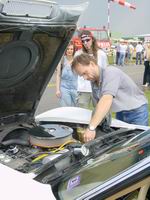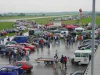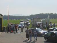 | Das Negative zuerst, der Veranstalter hatte wenig Glück mit dem Wetter und seiner internen Festorganisation. Daraus haben sich viele kleine Probleme ergeben, welche in Verbindung mit den Zuschauermassen ein wenig eskalierten. Leider wurde aus dem geplanten Raceday ein An- und Abreisetag für die Besucher. Die Verpflegungspartie konnte am Abend gut lachen, ihr Kassaladl dürfte Abends nicht mehr zugegangen sein, denn getrunken und gefuttert wurde teilweise schon aus Frust über den immer wieder verschobenen Rennbeginn. Aber der Reihe nach: zuerst überrennen die Besucher- und Teilnehmermengen den Veranstalter, ich habe gehört, dass die Anreise von Stockerau Mitte bis zum Flugplatz etwa eine Stunde gedauert hat. Unglaubliche Mengen Interessierter sind auf den Beinen um am Flugplatz das Rennen zu sehen. Letztendlich ist die Strasse von Stockerau Richtung Flugplatz beiderseits, vom Ortsende Stockerau bis zum Flugplatz, komplett verparkt. Immerhin ca. zwei mal 1,5 Kilometer von geparkten Autos (so geschätzte 600 Autos). Die Weinlingerschottergrube leider aufgrund der Regengüsse recht "gatschig" aber auch ganz gut verparkt. Unsere Zufahrtsstrasse verparkt und der Ostteil des Flugplatzes auch in 5 Zweierreihen mit Autos vollgestopft. Ich schätze (mit den angemeldeten ca. 250 Teilnehmern) nochmals etwa 600 Autos. Der erste Regenschauer (TSGR laut Forecast) überrascht alle. Auch die empfindliche Elektronik der Zeitnehmung. Trocknung der Komponenten mittels Heißluftpistole, dann wird die Piste trockengefahren, dabei zerreißen die Autos die für die Zeitnehmung nötigen Kabel -- weitere Verschiebung des Rennens. Die Zuseher beginnen jetzt „ein wenig unruhig“ zu werden. Letztendlich startet das Rennen etwa gegen 14:00, immer noch mit Sorgen bei der Zeitnehmung. Aber was soll's, Gas geben kann man auch ohne eine genaue Zeitnehmung zu haben. Einfach Auto gegen Auto aufstellen und losfahren. Teilweise recht eindrucksvolle Leistungen werden geboten. Nicht nur die Beschleunigungen sind sehenswert, der Sound der Autos und Bikes ist manchmal recht imposant. Leider sind viele von den Superschlitten nicht gefahren, aber Bilder gib's trotzdem für Euch: | ||||||||||||||