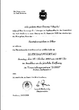 | Das Sportehrenzeichen in Silber für unseren Staatsmeister | Donnerstag, 23.10.2003, 17:00 Uhr | ||||