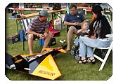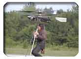 Herr Schöffmann, zeigte uns seine Konstruktion eines Einmannhubschraubers. Gegenläufige Rotoren, daher kein Heckrotor, Steuerung der Flugrichtung über Gewichtsverlagerung.