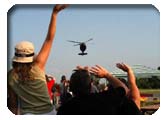 Helmut Hausader, Mr. Yakolev, zeigte wieder seine Show, mit Rauch und Direktkommentar aus dem Cockpit. Durch eine Liveschaltung in’s Yakcockpit war es uns allen möglich, Helmut’s Demo nicht nur zu sehen, sondern erfuhren auch die Namen der Kunstflugfiguren, welche er gerade zeigte. Toll zu sehen, wie sich ein Flugzeug beim Lumpazivagabundus (keine Ahnung wie die Figur wirklich heisst, irgendwie so ähnlich aber), über alle Achsen überschlägt und dann wieder in eine kontrollierte Fluglage zurückkehrt.