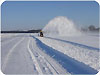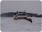 | Derzeit ist die Piste zu 80 % mit Eis und Schnne bedeckt. Etwa 5-10 mm hoch. Eine heute morgen durchgeführte Räumung hat das Ergebnis nicht wesentlich verbessert. Die auf der Piste liegenden Schneeverwehungen sind wir jetzt aber los. Momentan sieht's so aus, dass wir cirka 2 Tage Tauwetter brauchen, um die Piste wieder in einen befliegbaren Zustand zu bekommen. |