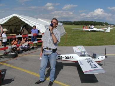 | Die Modellflieger (zwar nicht direkt in Stockerau zuhause, aber nur wenige Kilometer nördlich) Die Sierndorfer Modellsportler haben uns gezeigt, was man alles fliegen kann. Figuren, von welchen normale Piloten nur träumen, an Propellern hängende Flugzeuge, welche in der Luft stehenbleiben, Flugzeugschlepps, welche nahezu senkrecht in den Himmel schießen (der Segler fliegt dabei noch zwei Rollen) und Modelle, welche im Flugbild vom Original nicht mehr zu unterscheiden sind. Und dann kamen die Modelljet’s, wahhhhhnsinnnn. Die Modelle fliegen nicht nur wie die Vorbilder, sie haben auch den richtigen Sound. Hier wurden uns mehrere wirklich perfekte Vorführungen geboten. Gelernt habe ich übrigens auch, dass für diese Modellsportler Kohlensäurelöscher zum ganz normalen Rüstzeug für Ihren Flugbetrieb zählen. Offenbar will keiner zusehen, wie sein 5000 Euro teures Modell in Flammen aufgeht, sobald die Turbine spinnt............. Die Ballonfahrer Der geplante Kindernachmittag hatte als Attraktion die Micky Maus von Sylvia Wagner. Sylvia war bereit Kinder in Ihrem Heißluftballon bei gefesselten Aufstiegen mitzunehmen. Leider war es erst zu heiß und dann zu windig. Viele enttäuschte Kindergesichter waren die Folge, da konnte auch die Luftburg nur sehr bedingt Trost spenden. Für die Bemühungen ein großes Dankeschön. Übrigens Sylvia ist im Web vertreten unter www.members.aon.at/luftfahrer/index.htm Die Tandemspringer Zuerst mit der OE-KPC und drei Tandem Mastern vertreten, dann kam noch die HA-KCM zu Besuch und zeigte Ihr gemaltes Federkleid. Das "Tandemhupfen" erfreute sich großer Beliebtheit und es wurden in Summe sicherlich 15 Starts gemacht...... Die Segelflieger Unsere Sektion Segelflug hat den Segelflug und die Anmut der lautlosen Fliegerei gezeigt. Ein Start mit dem Twin Astir, Überflug des Schleppverbandes in geringer Höhe, Überflug des Seglers mit 250 Km/h, perfekte Landung. Super anzusehen. Konrad Zeiler war mit der Fox bei uns am Fest und hat zu stimmungsvoller Musik auf dem Himmel getanzt. Alle Pilotenherzen haben natürlich höher geschlagen, wie uns Konrad bei einem Überflug in etwa 150 Metern gezeigt hat, wie man eine gesteuerte Rolle präzise fliegt. Die Motorflieger Turbo Arrow, Cessna 172, Cessna 150 und Katana wurden unseren Gästen zum Angreifen in’s Statik Display gestellt. Die mit einem Zaun abgesperrte Grasabstellfläche östlich des Turmes wurde zur Festwiese umfunktioniert und mit Flugzeugen bestückt. Mehrere Vereinsmitglieder haben sich um unsere Gäste gekümmert, unermüdlich Fragen beantwortet, Zeiger im Cockpit erklärt und unseren Verein präsentiert. Die Rundflüge, welche wir aufgrund der Selbstkostenregelung mit Berufspiloten durchführen konnten, waren perfekt organisiert. Robert und Nadja haben die Gäste empfangen, informiert und die Reihenfolge der Flüge eingeteilt. Unsere Piloten haben Ihre Passagiere dann beim "Counter" abgeholt, beflogen und wieder vom nicht allgemein zugänglichen Teil des Flugplatzes geleitet. Während der zweieinhalb Flugtage habe ich eigentlich auch keine weißen oder grünen Passagiergesichter gesehen, so glaube ich, dass wir auch in diesem Bereich sehr positive Öffentlichkeitsarbeit geleistet haben und vielen Menschen die Freude des Fliegens näherbringen konnten. Motorkunstflug Helmut Hausader mit seiner YAK52 war eines der Highlights in unserem Programm. Erst stand die Yak im Statik Display – Kunstflugzeug zum Anfassen – dann hat der Helmut einige Starts für Gästekunstflüge gemacht und am frühen Nachmittag seinen Auftritt. Kunstflug bis 50 Meter über Grund vor unserem Publikum. Helmut hat über eine aufwendige Spezialschaltung direkt während des Fluges über unsere Lautsprecheranlage seine Figuren kommentiert. Aufregend anzusehen ist der Looping in geringer Höhe, wenn die Yak in etwa 150 Meter über der Piste noch in senkrechtem Sturzflug ist............... Übrigens mehr Infos zum Thema Gästekunstflug unter www.motorkunstflug.at Modernste Technologie zum Thema Flugzeugbau war auch bei uns in Stockerau Diamond Aircraft hat mit der DV40 sein neuestes Flugzeug zwei Tage lang ausgestellt. Der Verkäufer von Diamond hat ebenso wie unsere Vereinspiloten geduldig Fragen beantwortet, einige unsere Piloten durften dann auch mit der Diamond Star fliegen. Ich glaube zu wissen, dass alle begeistert waren. Mehr Infos zum Thema DV40 unter www.diamondair.com Helicopter Aerial Helicopter war mit drei Helicoptern bei uns vertreten Hughes 300, Agusta Bell 206 und Eurocopter EC120. Die EC120 stand am Freitag und Samstag im Statik Display und die Männer und Frauen von Aerial halfen unermüdlich, den Wissensdurst der Anwesenden zu stillen. Rundflüge mit Helicoptern sind natürlich auch ein Publikumsmagnet, so konnte sich auch Aerial Helicopter nicht über mangelnde Auslastung bei der Fliegerei beklagen. Natürlich auch hier ein Link www.aerial.at Die Amateurflugzeugbauer 5 Flugzeuge des Igo Etrich Vereines waren zu Besuch, ob Europa, Cherry, Jodl oder Alpha alle schön anzusehen und genau auf die Bedürfnisse ihrer Besitzer zurechtgeschneidert. Allen Flugzeugen sah man die Liebe zum Detail Ihrer Erbauer an. Der Igo Etrich Club ist erreichbar über http://members.pgv.at/ieclub/ Hans Gutmann Der Weltmeister im Präzisionsflug hatte leider eine undankbare Aufgabe, sein "Rund um die Welt im Selbstbauflieger" Vortrag lief in einem viel zu heißen Hangar und so fanden sich leider zu wenige Zuseher ein. Wir hoffen auf eine Wiederholung seiner Bemühungen im Herbst.......... Wolfgang Faschangs "Lady be good" Diashow und der FSV 2000 Film waren neben dem Flugsimulator das Rundhangarprogramm, welches das Geschehen am Flugplatz abgerundet hat. Obwohl die ständigen fliegerischen Aktivitäten eine starke Konkurrenz zum Indoorprogramm waren, wurden die Jungs nicht müde, das Programm immer wieder zu starten............. Nicht zu vergessen die Versorgungsoffiziere, mit Onkel Georg an der Spitze hatten sie einen Durchmarsc