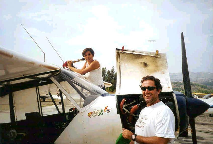 | The above nice looking lady "Monika" is taking care of the Catering and refuelling of aircrafts under 35c heat in LEAX "La Axarquia" Aerodrome about 15 minutes from LEAM "Malaga International Airport" Spain. Please note that she is still smiling and happy. Positive attitude is always healthy. LEAX is an uncontrolled aerodrome for training and touch and goes, which cost about 20 for as many as you want, also it is the start location for all plane advertising around the South Coast. I flew about 5 hours around the Malaga area and to Morocco "Tanger" which was very interesting flying indeed. Flying along the coastline and crossing the strait of Gibraltar to Morocco was spectacular. The company where I rented the plane from is very efficient and professional (http://www.aero-club.org). They speak Spanish, English and German and it costs around 100 for one hour flying with a C-172. They provide you with all required maps, airport approach charts and pre flight briefing. Their planes are in good condition and are all equipped with GPS pilot III, which was helpful when flying around control zones and prohibited areas especially that around Gibraltar. I must confess that the quality and maintenance of our planes in LOAU "Stockerau" are unbeatable, our aircraft are very much taken care of externally as well as internally, it is really nothing to compare to any aircraft I have seen in any other aerodrome considering the age of these aircraft. Well done FSV2000 "LOAU". By Muthana Alnaher, August 2001 |
