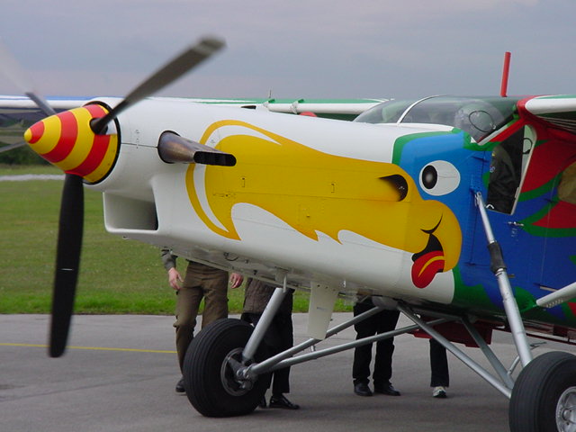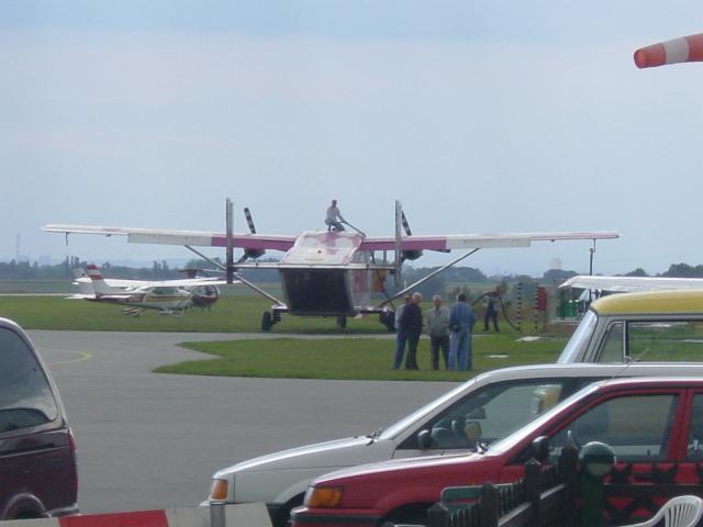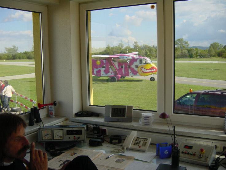Einige Skyvanbilder.... Leider hat es auch einen gebrochenen Fuß gegeben. Wir vom Flugplatz, wünschen baldige Besserung an den Passagier! Unsere Verpflegscrew bei der Arbeit. Da das Wetter schlecht und der Andrang eher "malo", blieb auch Zeit, um ein Würsterl selber zu essen. Helmut mit der Yak war auch da. Ein Vorgeschmack auf morgen liegt in den nächsten Bildern. Einige unserer Gründungsmitglieder sind am Flugplatz. Einer der "Hähnels" ist extra aus Spanien angereist. Mehr davon in der morgigen Ausgabe von Pink Boggie 4 in Stockerau... oder ist es doch ein Blue Boggie ???