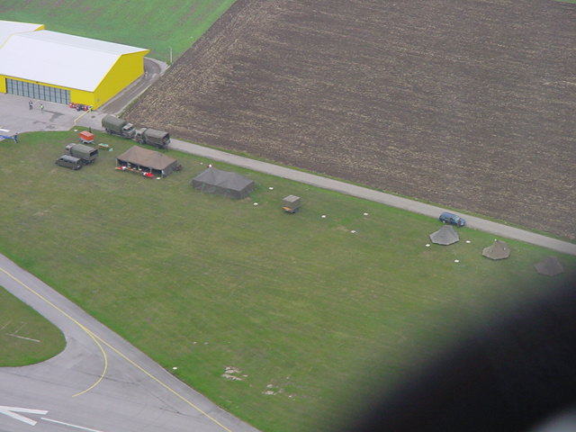 Dr. Zahn kann erst am DO 20.Sept. 0800 CET LOAU Stockerau, 7.9.2001, 17:50 Uhr Am Wochenende rückten Sie an. Etliche LKW, viele Männer, Zelte, Verpflegungseinheiten und zu guter letzt auch zwei PC6. Alle in einer für einen Österreicher bekannten grünen Farbe. Zelte wurden am Flugplatzrand aufgeschlagen, viele kleine, zum Übernachten im Felde ("Flugfelde") und zwei große, für's Futterfassen. Tonnenweise Ausrüstung und Menage transportiert. All das um eine Partnerschaft zu feiern, 20 Jahre ist Shell Austria nunmehr der Partner vom Fliegerregiment 1. Aus diesem Grund hat das Fliegerregiment zu einem Fest eingeladen, zu uns nach Stockerau als Mittelpunkt der Aktivitäten. Zuerst ab nach Langenlebarn, dort konnte man Pistolenschießen, retour in Stockerau und ab auf den LKW. Nach Leitzersdorf. Schießstand für's Sturmgewehr. Im Senningerlager konnte man mit einem LKW und einem Jeep Geländefahren. Für einen Flieger jedoch ist das alles natürlich nix gegen den Rundflug mit einem Militärflugzeug. Alle Anwesenden konnten von der PC6 aus das Weinviertel von oben betrachten. Und hier ein kleines G'schichtl... Mittags gab's Eintopf. Als wir am Ende der Mittagszeit am Verpflegungszelt vorbeikamen hörten wir folgende Konversation: