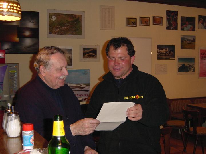 Danke an Richi Rettenbacher für seine heutig eindeutig bewiesenen Begabungen als Cafetier! Die Golatsche war vom Feinsten, aber den grossen Braunen kann nur noch Peter Janda besser! Peter, der nebenbei noch geflogen ist, leitetete den kompletten kulinarischen Teil der Veranstaltung! Danke auch der Crew, die die gelben, grünen und orangen Zetterln verteilt hat, unter Leitung unseres Herrn DUSCHEK!