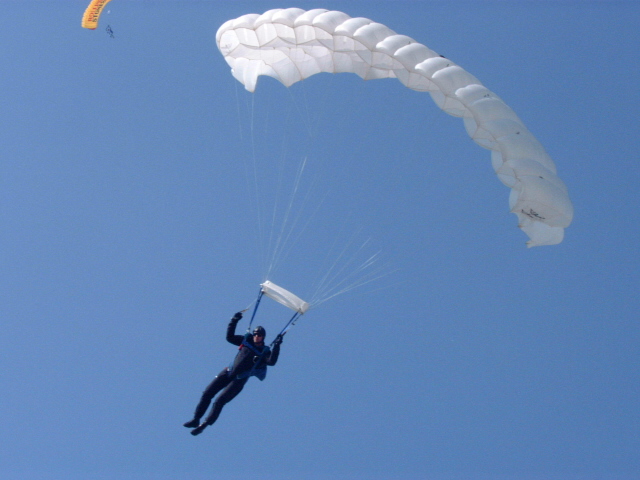 Ahhhja, der, der gestern schon der Held des Tages war. Ohne ihn gäbs bei uns ja keinen Pink Boogie und die SkyVan hätte einen Freund weniger: Schaut Euch einmal an, wie der Robert Zach nach dem Ausladen der Fallschirmspringer runtergeht. Ich hab das ja schon einmal erlebt, daher war ich darauf gefasst.