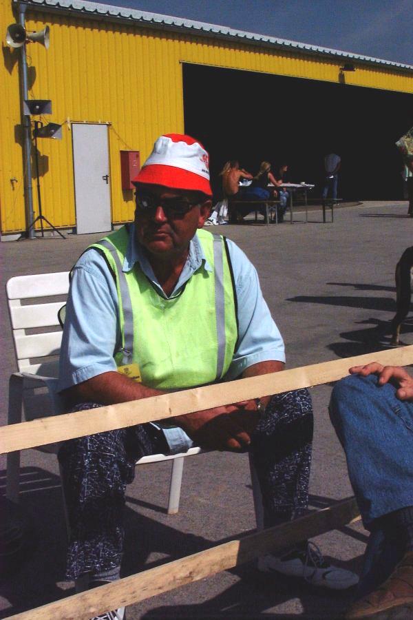 "Eisi" Rainer Eisinger beherrscht den Hubschrauber derart, dass mir das Herz stockt: Einmal tänzelt er wie eine Prima Ballerina, einmal taucht er aus den Tiefen der nebenliegenden Schottergrube auf wie bei einer NATO-Tiefflugübung. Mich wunderts, dass er noch kein Looping über der Runway probiert hat! Nichts von alledem verspürt man aber, wenn man Im Helicopter drinnen sitzt. Das kann nur ein Zeichen korrekter Bedienung sein, da schmiert nichts, da schiebt nichts. Bravo Rainer - Du hattest unter den Zuschauern besonders viel Applaus!