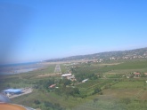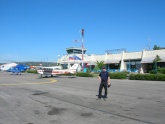 Der Flugplatz ist geprägt durch ein sehr modernes Tower-Gebäude und eine Abfertigungsbaracke aus der längst vergangener Tito-Ära. Unter der rustikalen Veranda sitzt hinter einem Uralt-Holztisch der Zöllner – ein Bild wie aus einem Italo-Western von Sergio Leone.