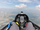 Die Thermik erweist sich aber bald als wirklich zuverlässig und nach einiger Zeit probiere ich alles Mögliche, um mein Flugzeug am weitersteigen zu hindern: Mit ausgefahrenen Bremsklappen kreisen geht ganz gut, aber die ständige Quietscherei der Fahrwerkswarnung nervt. Also Fahrwerk auch raus, dann ist zwar das Quietschen weg, aber der offen Fahrwerkskasten brummt unangenehm. Mit 180km/h, 70° Querlage und 3g kreisen macht viel mehr Spass, ist aber auf Dauer körperlich recht anstrengend. Slippend kreisen geht auch - sogar nach innen und nach außen - erfordert aber viel Aufmerksamkeit, weil mit gekreuzten Rudern der Weg zu Trudler nicht mehr weit ist. Letztendlich ist das alles eine schlimme Vergewaltigung meiner LS4, aber so vertreibe ich mir halt meine Zeit. Nach einer Stunde frage ich ganz demütig noch mal um die Freigabe und bekomme als Antwort nur „expect entering in 30 minutes“ – OK, ich sag eh nix mehr.