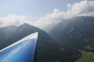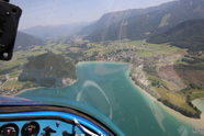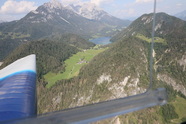 Eigentlich wollte ich ja über die Schweiz, Südtirol nach Lienz fliegen um am nächsten Tag Kärnten zu besuchen, aber die Labilität der in Oberitalien lagernden Luftmassen verhindert dies erfolgreich mit Gewittern, also Planänderung und übers Allgäu und Südbayern zurück nach Zell am See, zwei kleine Zwischenstopps in Kufstein und St. Johann gelingen, der wilde Kaiser hat eine kleine Wolkenhaube, so cool, der Versuch das Matrashaus am Hochkönig zu besuchen scheitert am Nordwind, dem Lee des Hochkönigs, der Unwilligkeit des Falken heute noch über 5000ft zu steigen, dem zu Ende gehenden Sprit, der vollen Speicherkarte der Kamera und meiner Unlust noch eine halbe Stunde im Bock herum zu kämpfen, so, gibt’s noch Argumente den Versuch abzubrechen, na Wurscht, kein Vorbeiflug am Matrashaus, dafür "leider" schon wieder zwei Portionen Salzburger Nockerl in Zell….