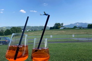 In Gmunden das Flugzeug gesichert, leider kein Hangar, die 9474 hat aber so was wie Verankerungspunkte unterm Wing, ich hatte an entsprechende Spanngurte glücklicherweise gedacht, Taxi organisiert und rauf auf die Postalm zum Knödel und Kabarett Abend. Peter und Andrea treffen wir am nächsten Tag bei einer kleinen Bootsfahrt am Attersee, dann ab ins „Das Attersee“, sehr lässsig und nicht in der kurzen Hose, wenngleich Peters Nerven schon absolut blank lagen aufgrund der „etwas“ angespannten Parkplatzsituation rund ums Lokal, ein gemütlicher und kulinarisch guter früher Nachmittag.