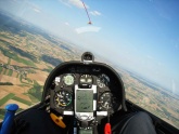 Ab jetzt beginnt’s richtig Spaß zu machen: Meine Flughöhe pendelt ständig zwischen 1700 und 2100mNN, alle paar km steht ein zuverlässiger Bart und dazwischen lasse ich meiner LS4 mit 160-180km/h freien Lauf. Unglaublich wie das Ding im Vergleich zu unseren Vereins-Astiren bei hohen Geschwindigkeiten gleitet. Die schwächeren Aufwinde werden im Geradeausflug mitgenommen und nur in den wirklich guten ziehe ich ein paar Kreise um kurz danach den Knüppel wieder ordentlich nach vorne zu drücken.
