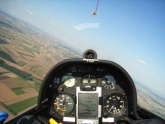 Im Funk höre ich schon seit einiger Zeit ein paar Dobersberger Segelflieger, die offensichtlich auch auf Strecke sind und im Platzbereich wird das Thermikkurbeln geschult. Ich weis, dass ihre Flieger nicht mit Flarm (so eine Art Mini-TCAS für Segelflugzeuge) ausgerüstet sind, aber trotz dementsprechender Aufmerksamkeit sehe ich einen in gleicher Höhe entgegenkommenden Segler erst auf relativ kurze Entfernung. Da hab ich sicher schon mehr Geld sinnloser ausgegeben als die rund 500 Euro für das Flarm in meiner LS4 – nur hilft’s leider nix, wenn der Gegner keines hat. Diese Wunderkistln haben wir übrigens in allen Segelflugzeugen, die in Stockerau stationiert sind (außer den zwei L-Spatzen unserer Alt-Segelflieger - die haben leider keinen Strom im Flieger).