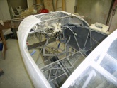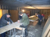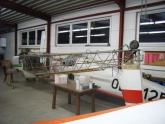Was keiner auch nur annähernd erwartet hätte, hat unsere Segelfliegertruppe, vom Obmann bis zum Flugschüler und vom Platzrundenflieger bis zum Steckenflieger, nach nur 3 Wochenenden geschafft: Bespannung und Lack sind komplett runter, das Rumpfgerüst ist geschliffen, Motor, Instrumentenbrett und das komplette Interieur sind ausgebaut. Die bisher vorgefundenen Schäden sind nicht besorgniserregend und für einen 30 Jahre alten Flieger erstaunlich geringfügig.
